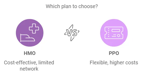 HMO (Health Maintenance Organization): You can only use doctors and hospitals within the network, and you must receive care through a Primary Care Physician. It is cost-effective but does not cover out-of-network services.